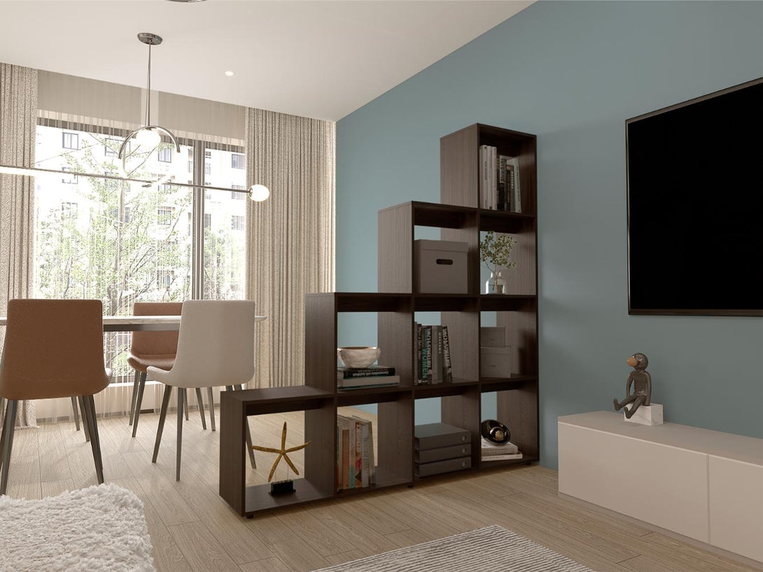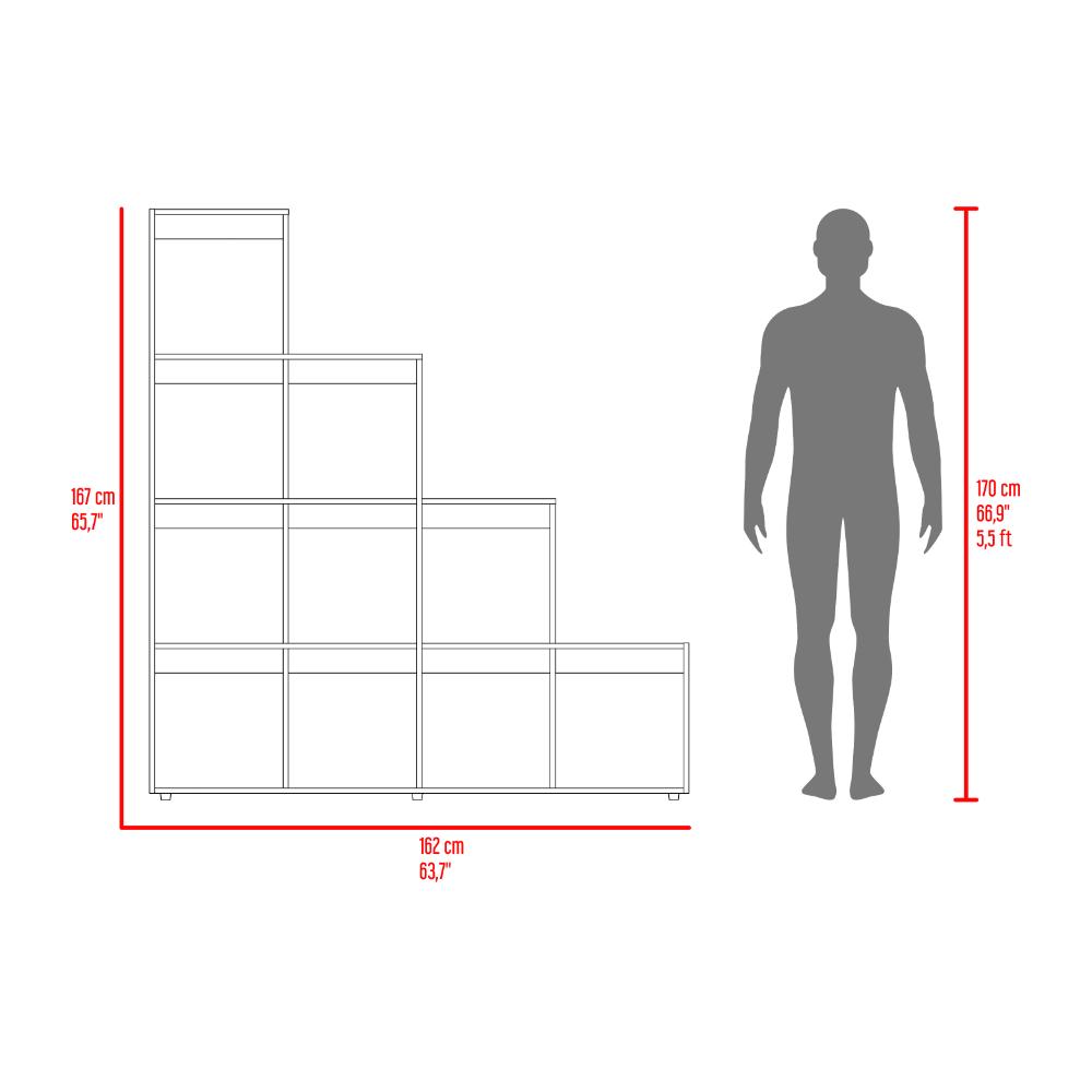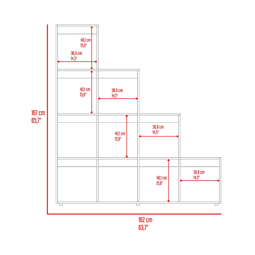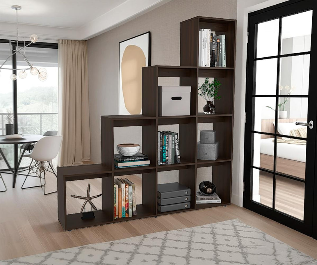 Biblioteca, con excelente capacidad de almacenamiento, espacio para libros y objetos decorativos, permite ubicarse como divisor de espacios, fácil instalación y diseño contemporáneo.