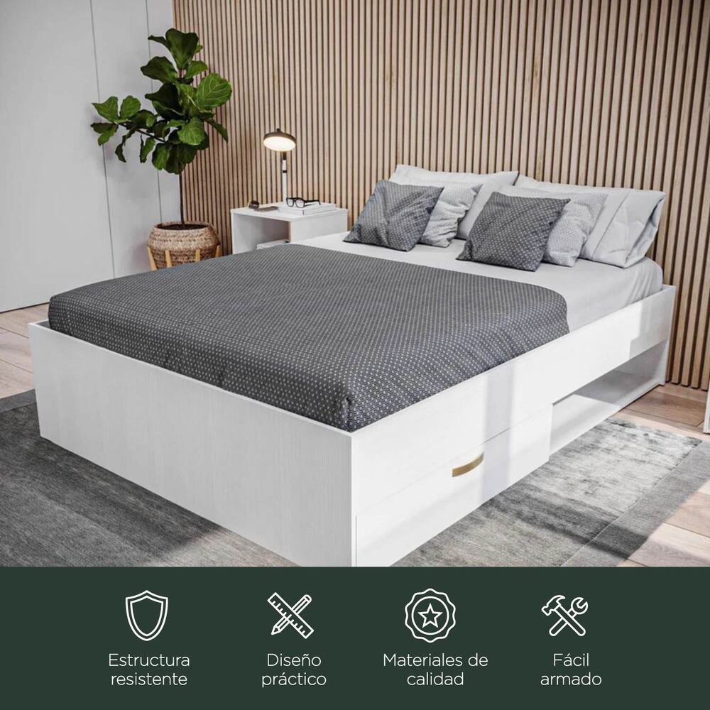 Cama Doble Nórdica Con Cajón Blanco