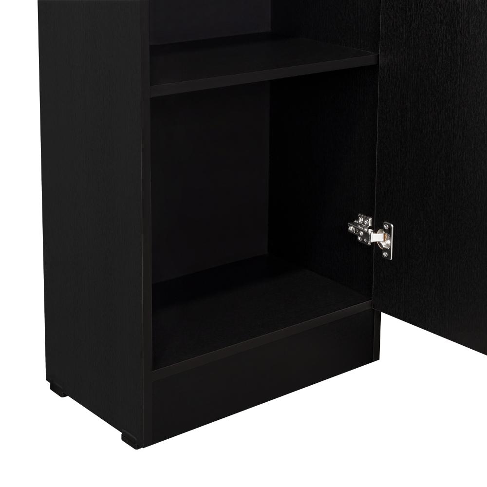 Elaborado en Madera aglomerada MDP, recubierta con láminas melamínicas de excelente calidad, en color Wengue.