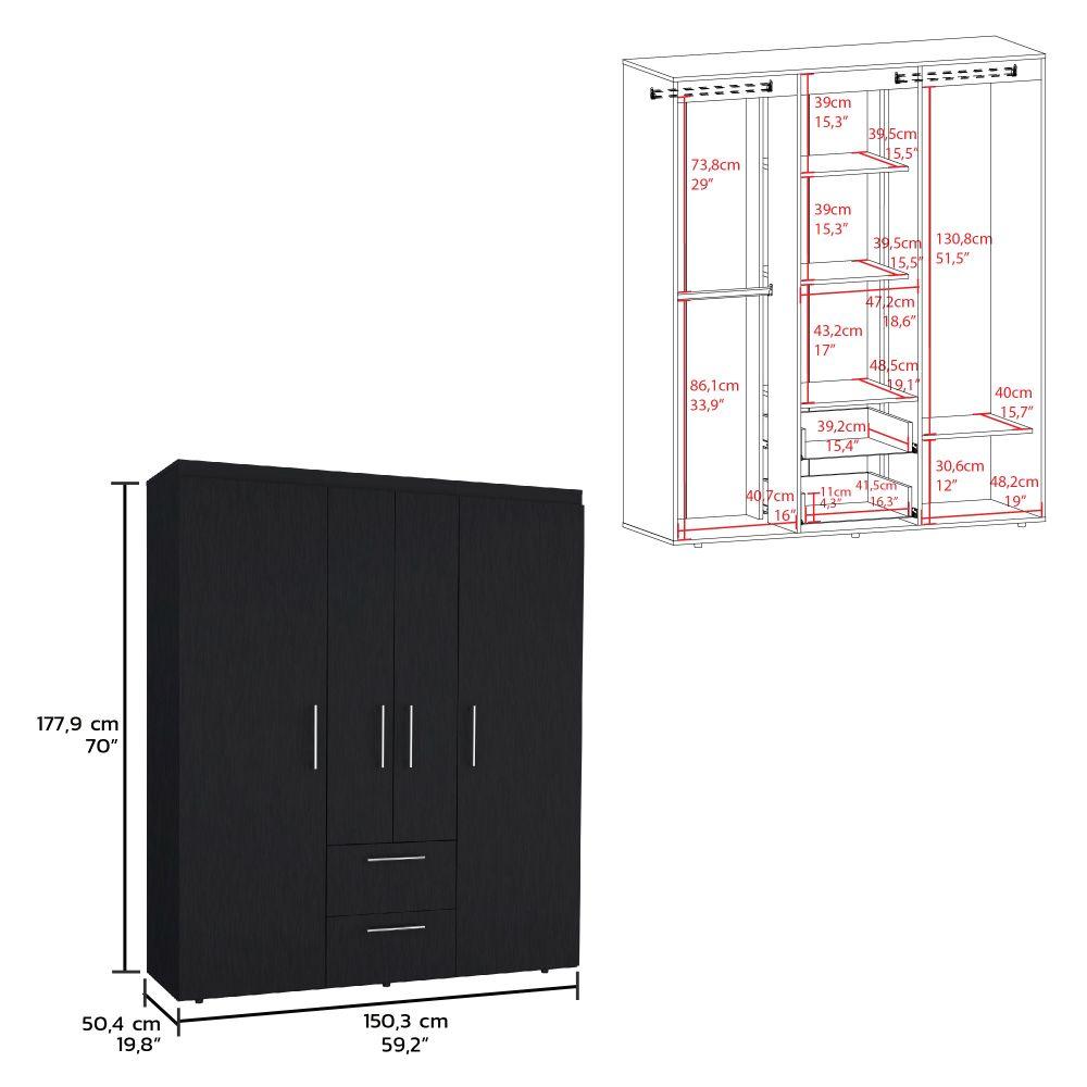 Closet Bariloche Bombay Eco, Wengue, con Variedad de Entrepaños y Cuatro Puertas Abatibles ZF