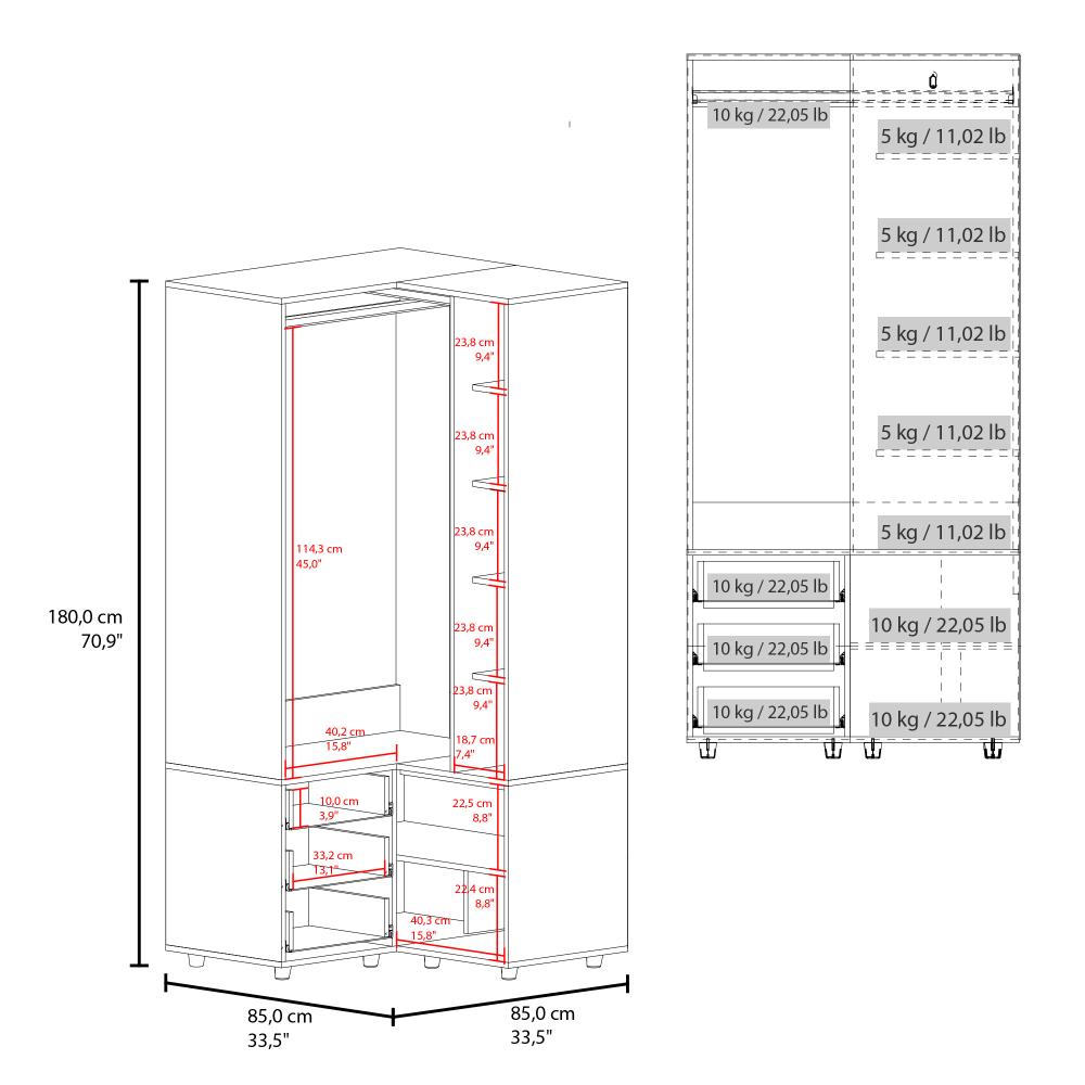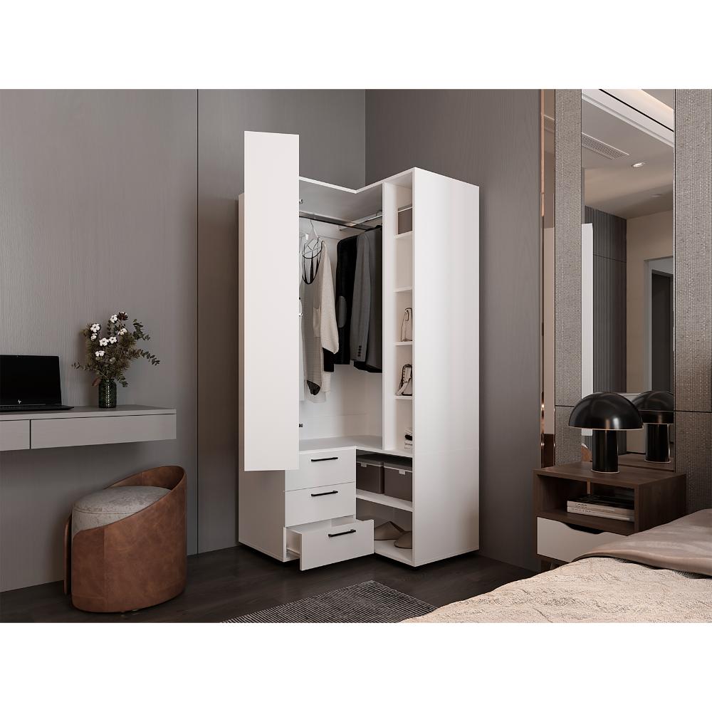 Closet Esquinero Tolu, Blanco, con tres cajones y múltiples espacios ZF