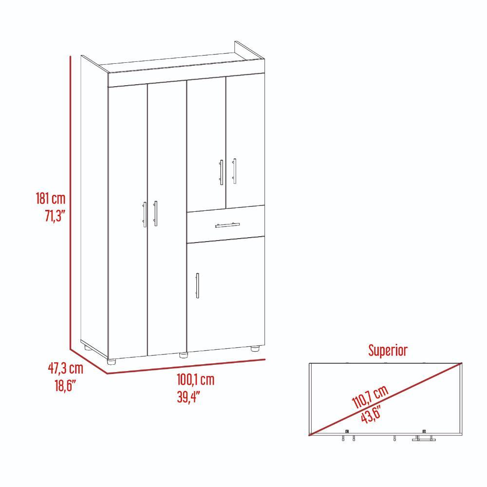 Closet, Cuenta con ocho puertas y dos cajones, amplio espacio de almacenamiento.