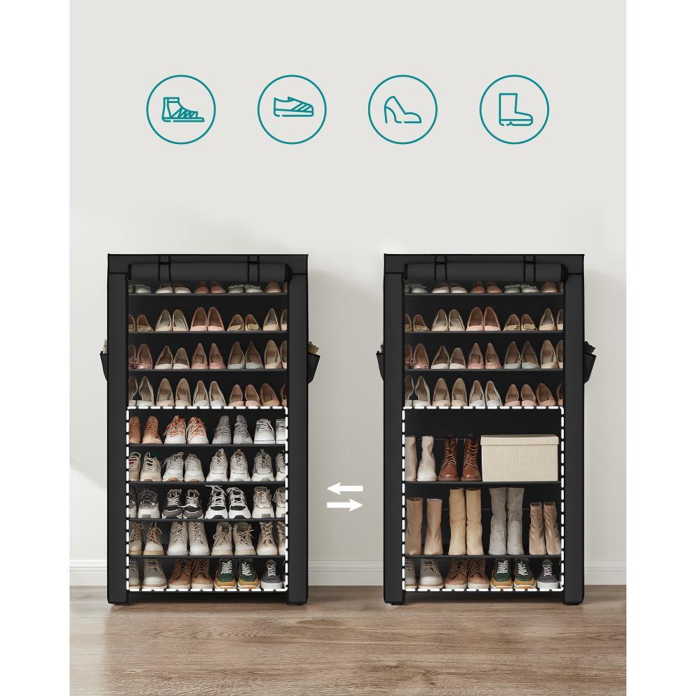 Zapatero de zapatos de 10 niveles, estante de almacenamiento de zapatos de metal para 28 pares de zapatos, fácil de montar, entrada, Negro