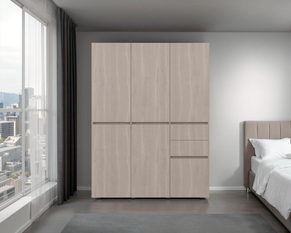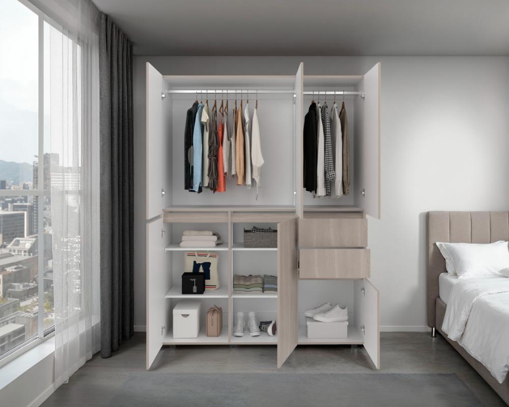 Closet, diseño moderno, 2 cajones multiusos, 6 puertas abatibles, 4 entrapaños moviles, tubos metalicos para colgar ropa y es de facil instalación.