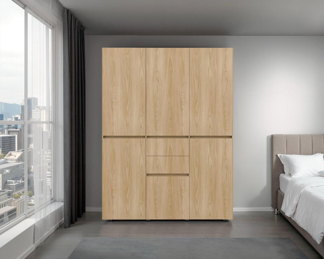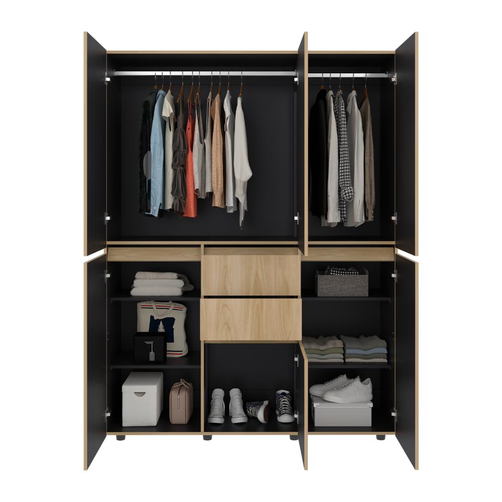 Closet, diseño moderno, 2 cajones multiusos, 6 puertas abatibles, 4 entrapaños moviles, tubos metalicos para colgar ropa y es de facil instalación.