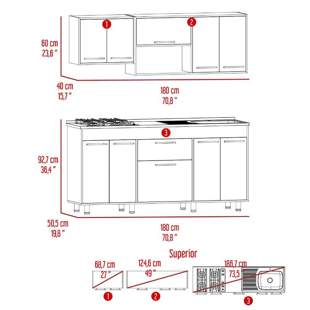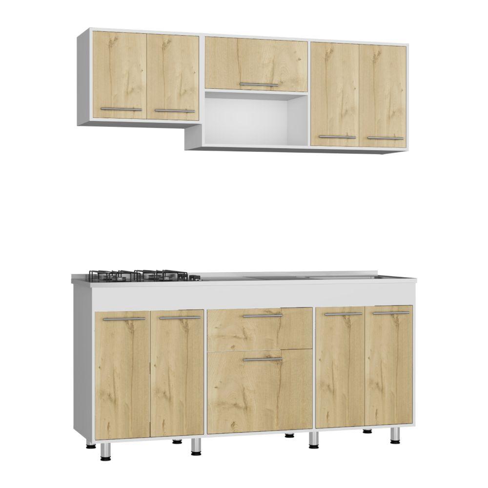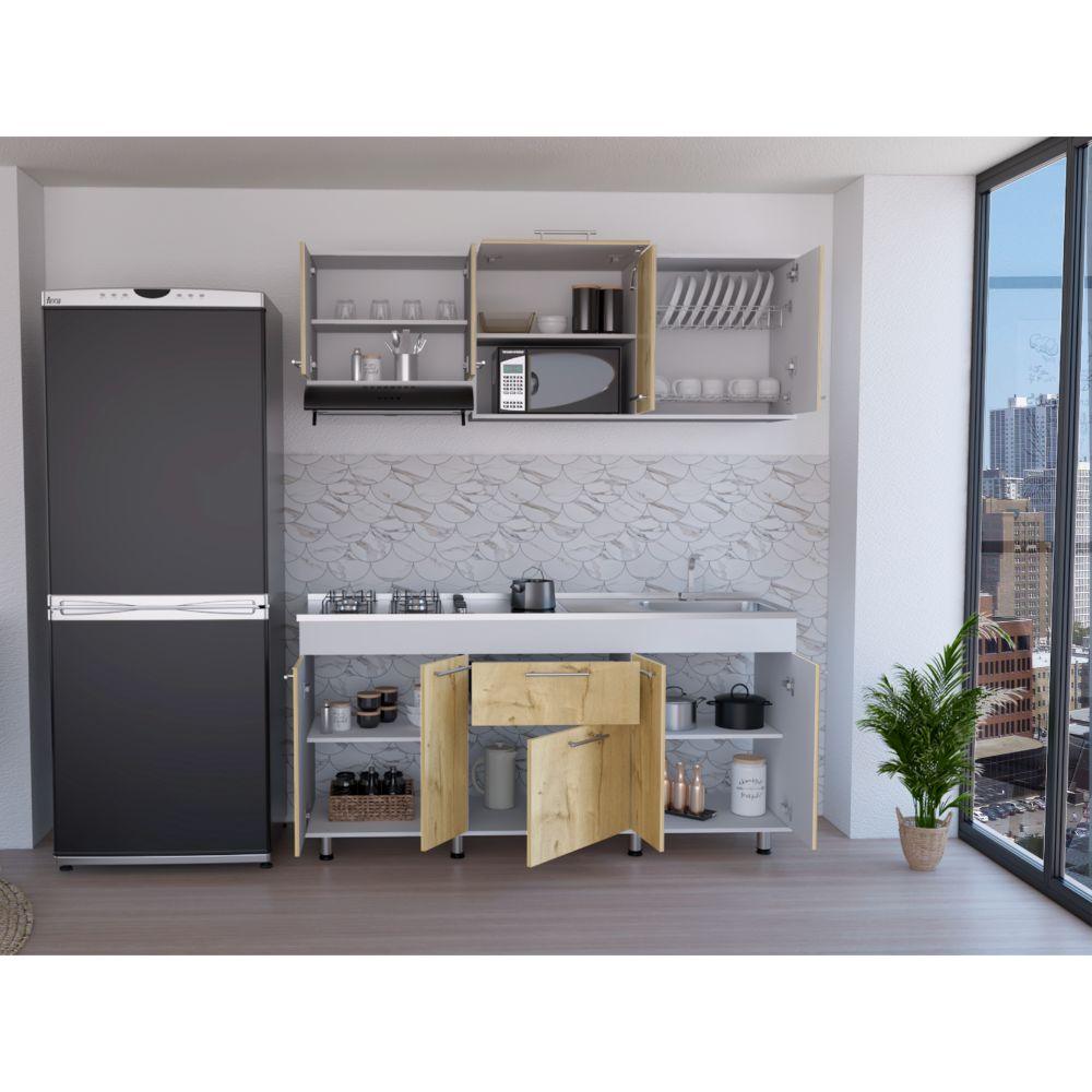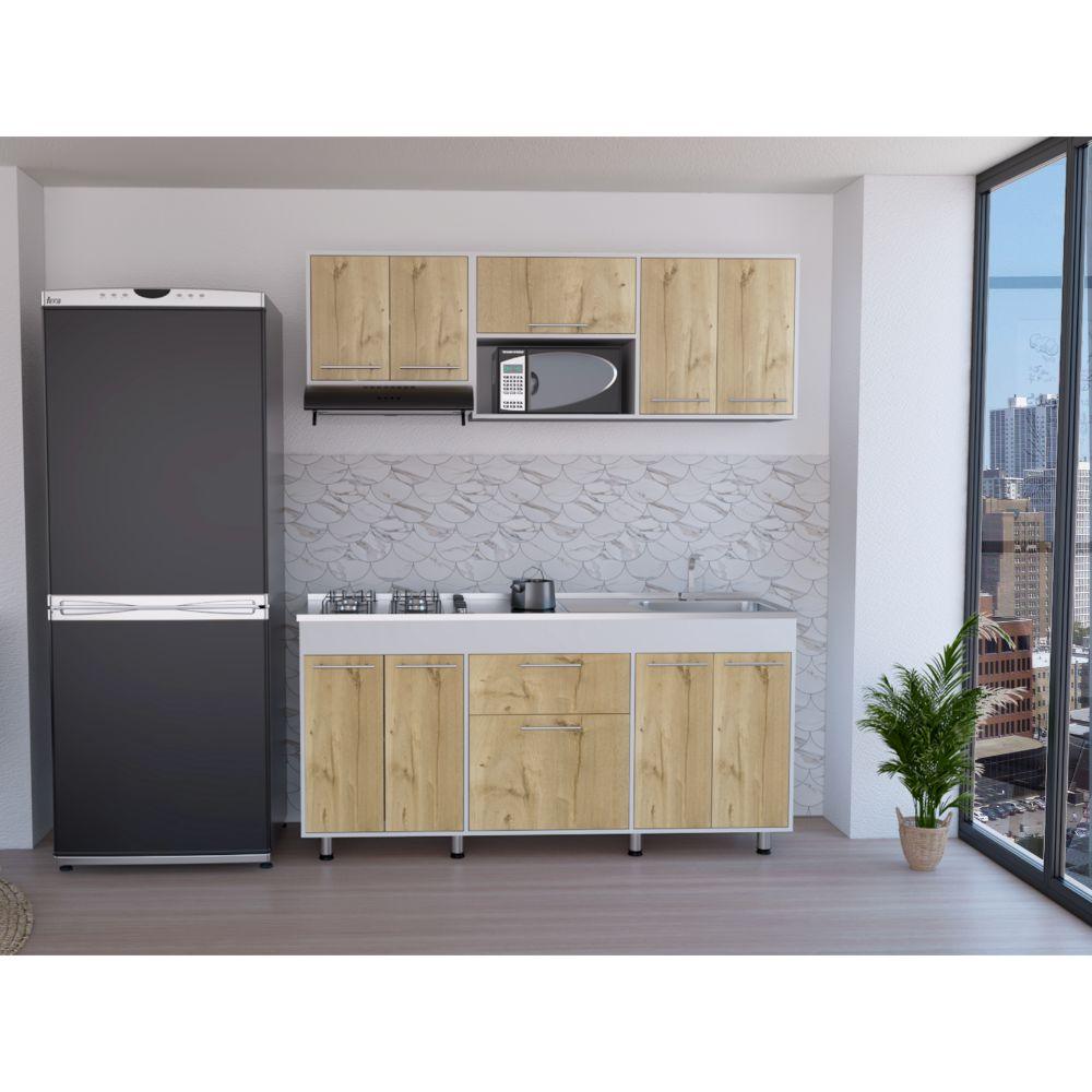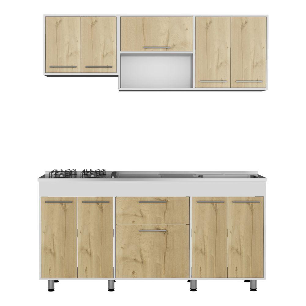 Cocina Integral Wester, Café Claro y Blanco, Incluye Mesón Derecho en Acero