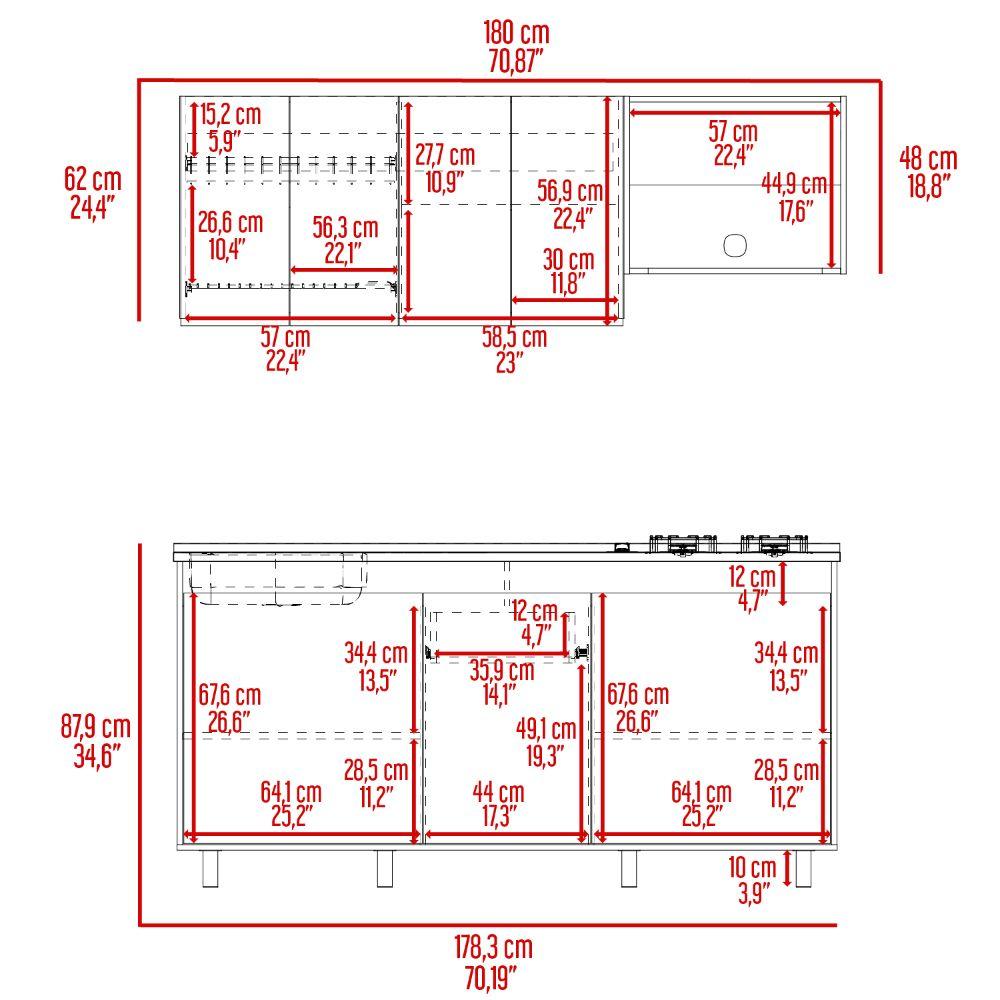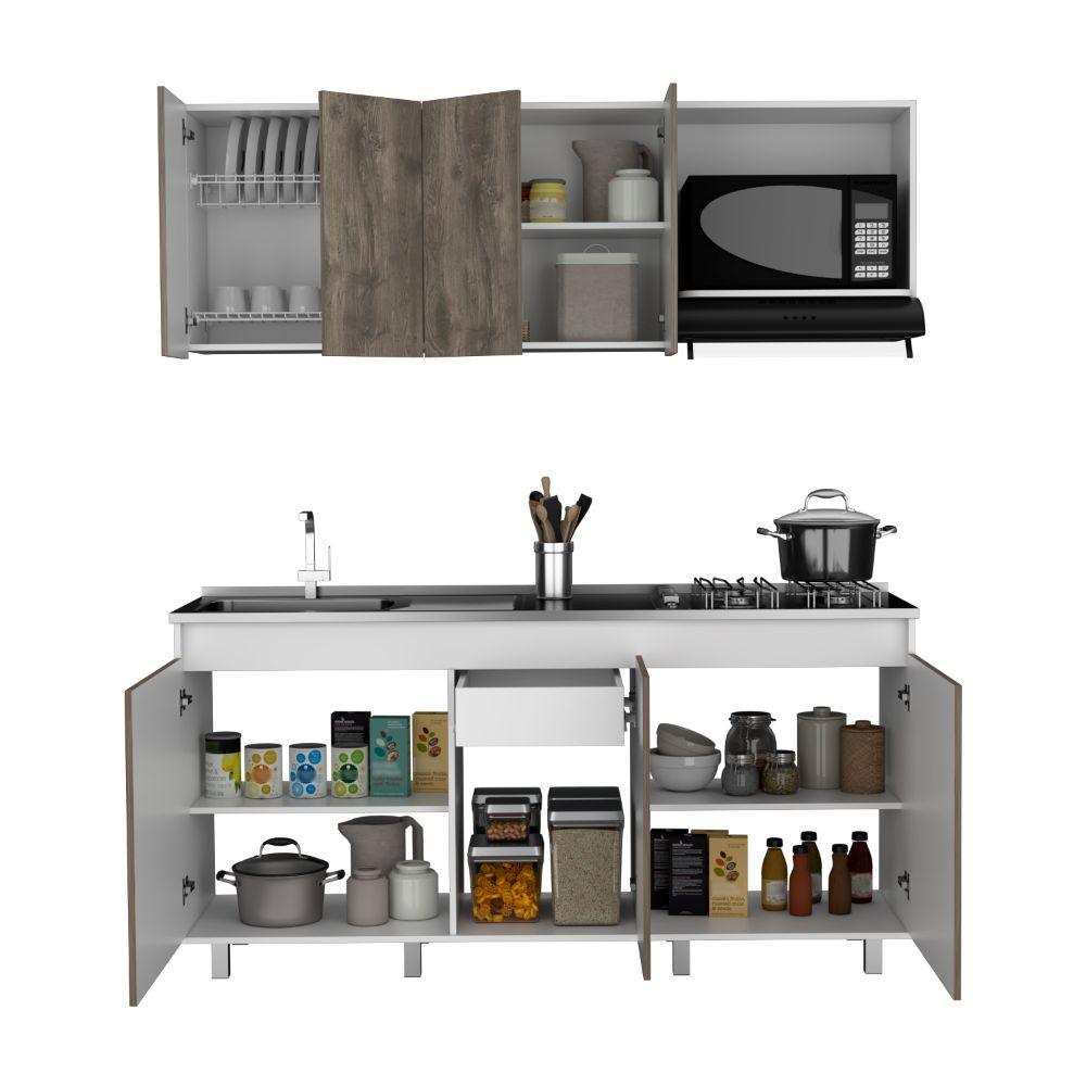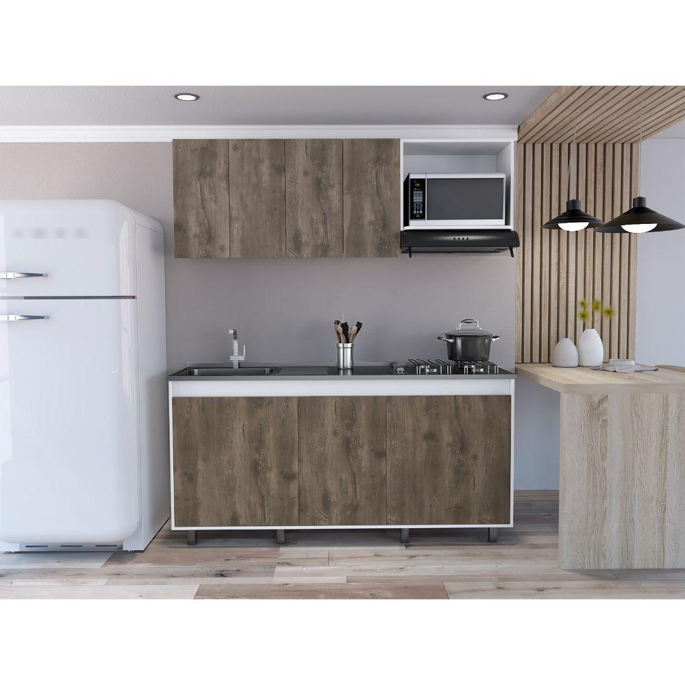 Cocina Integral Zurelly, Nogal y Blanco, Incluye Mesón Izquierdo en Acero