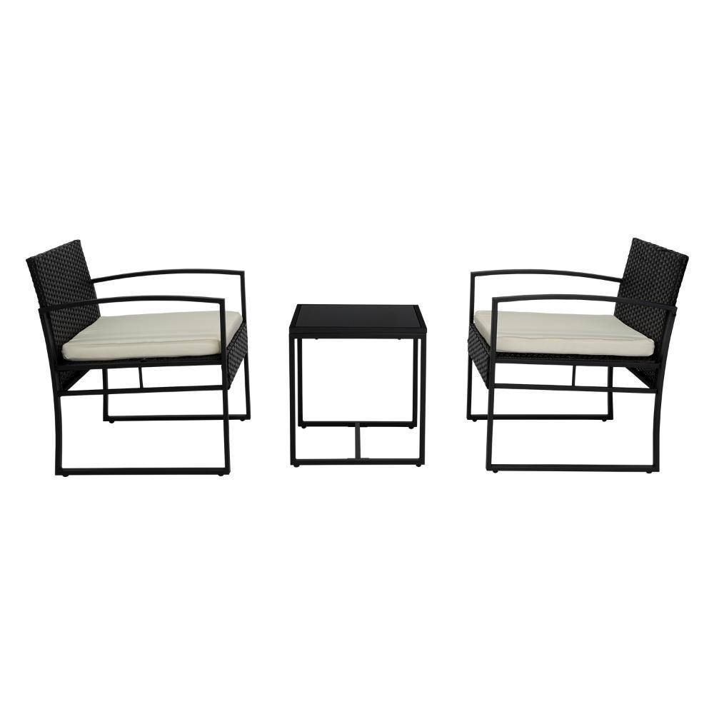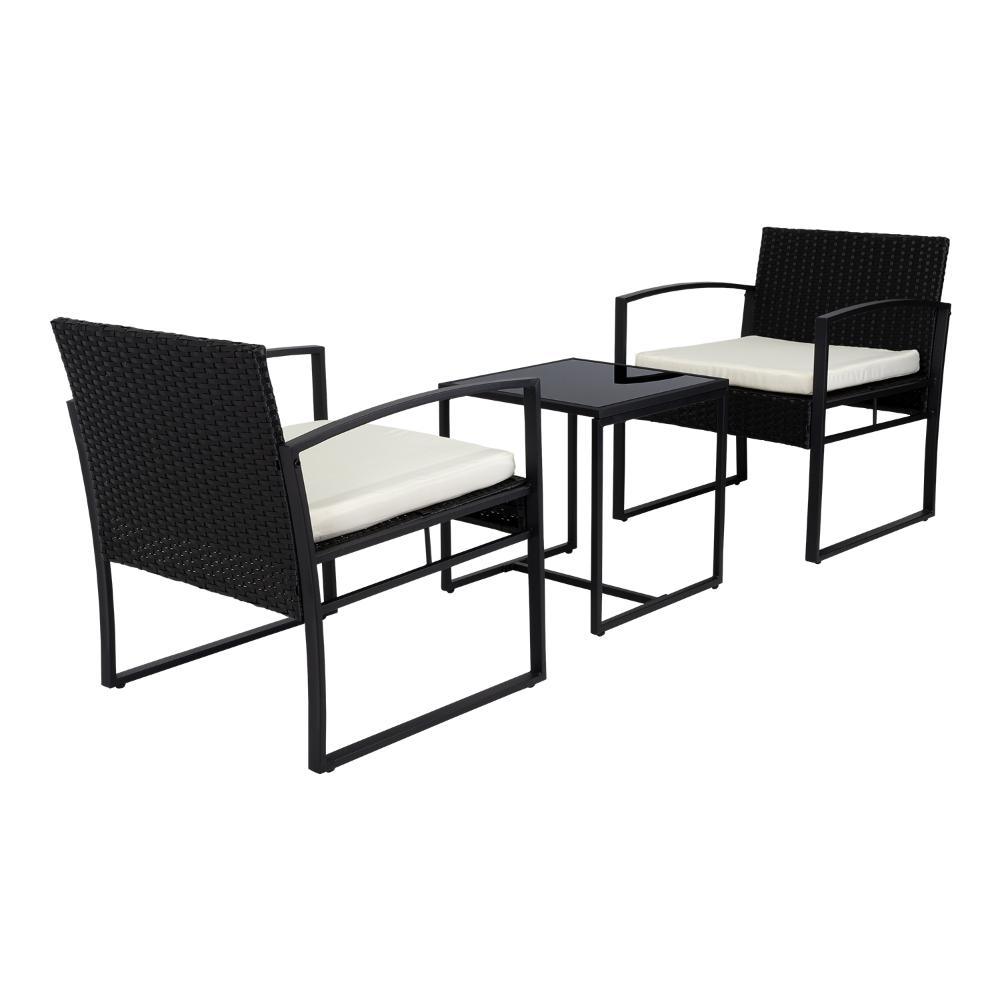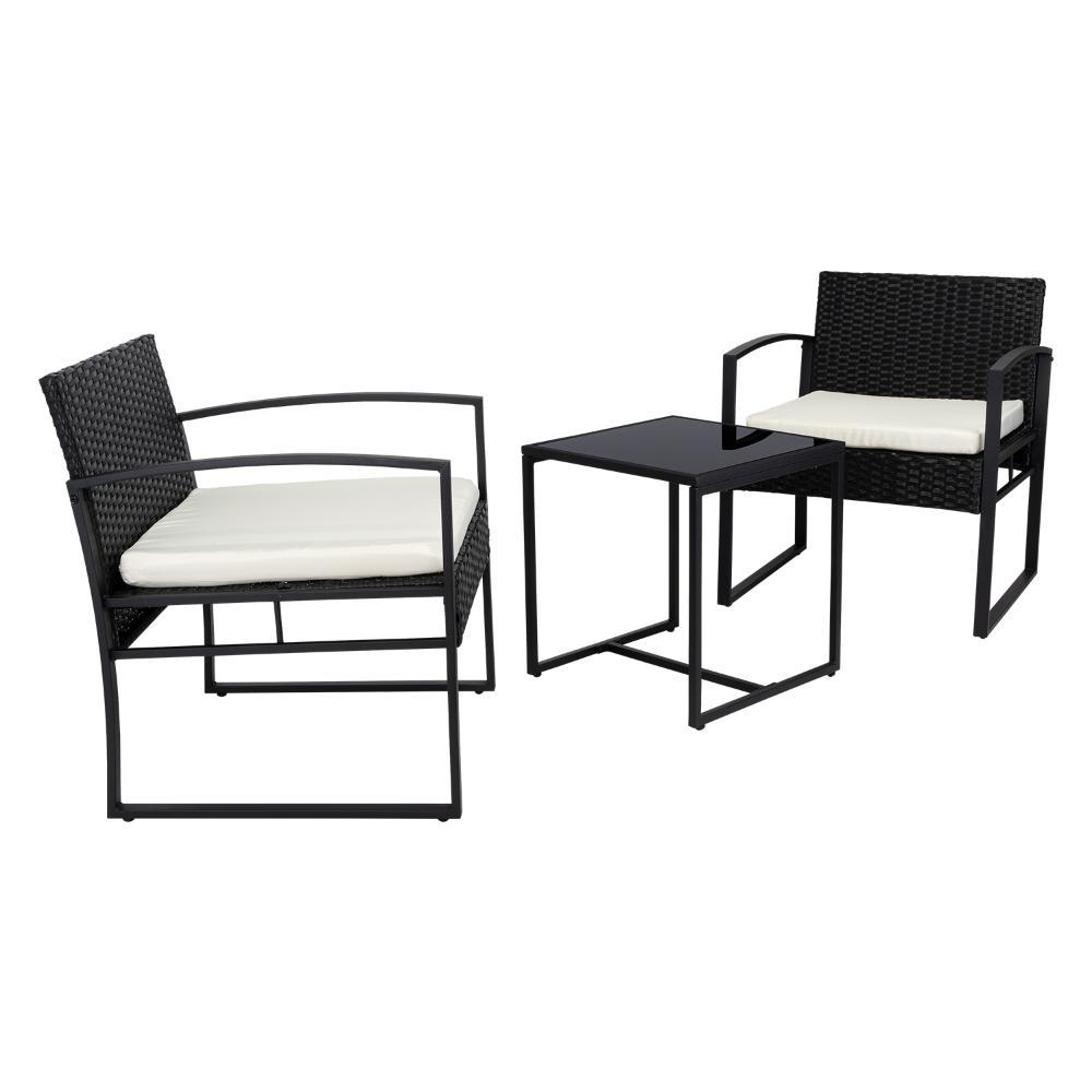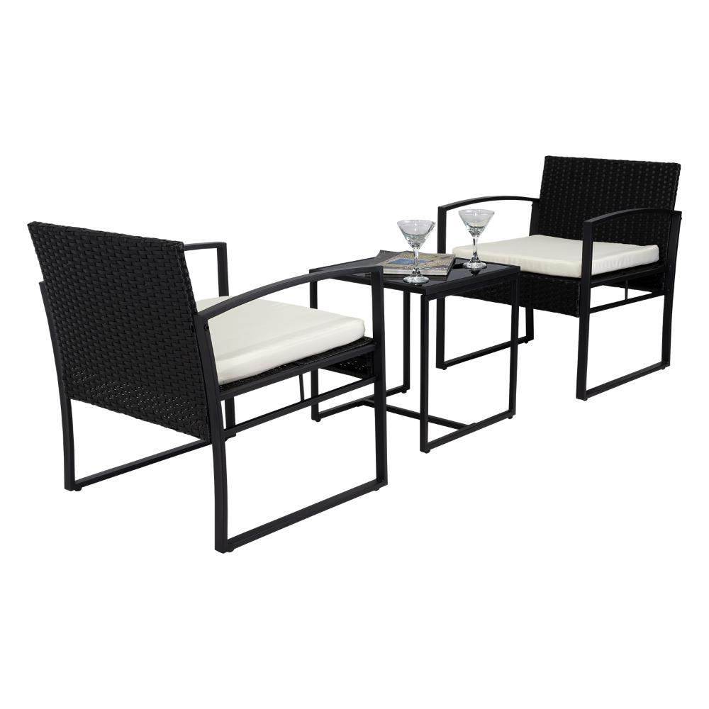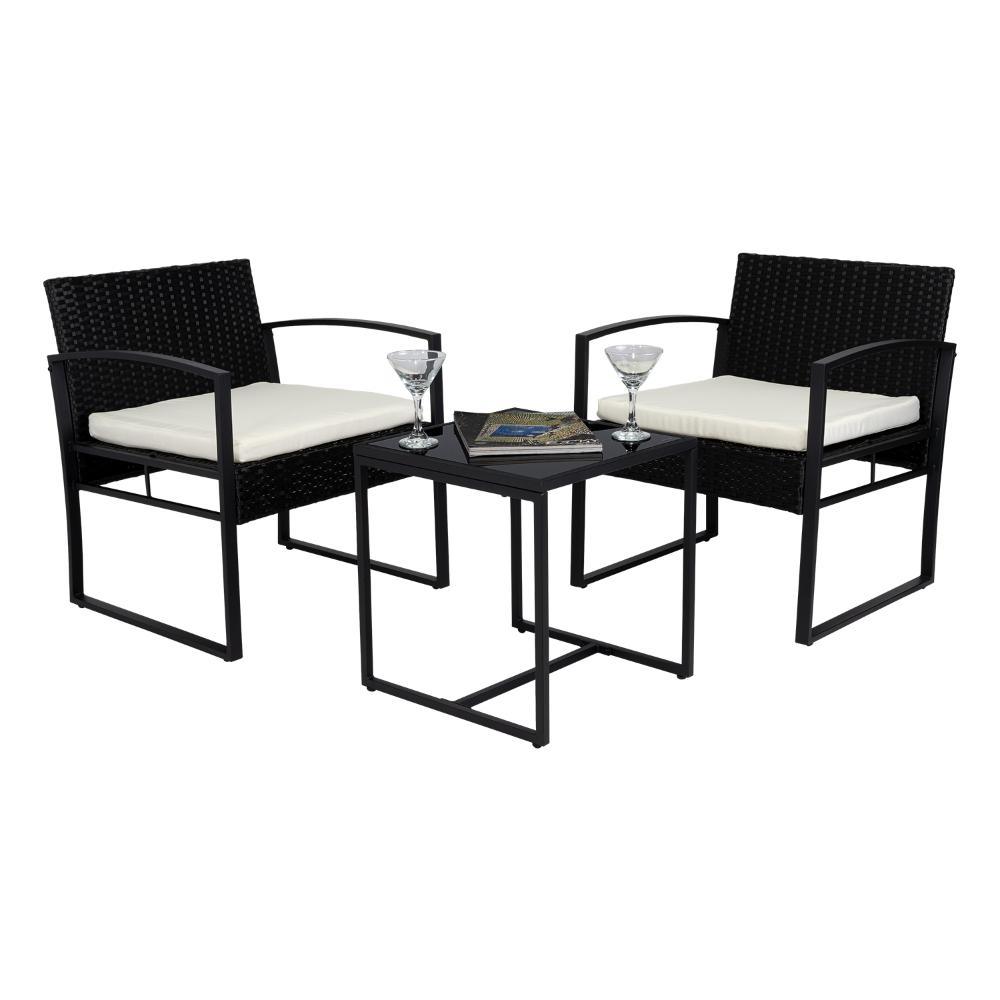 Elaborado en Plástico, Metal y Textil el set incluye mesa y dos sillas, en Color Negro y Blanco.