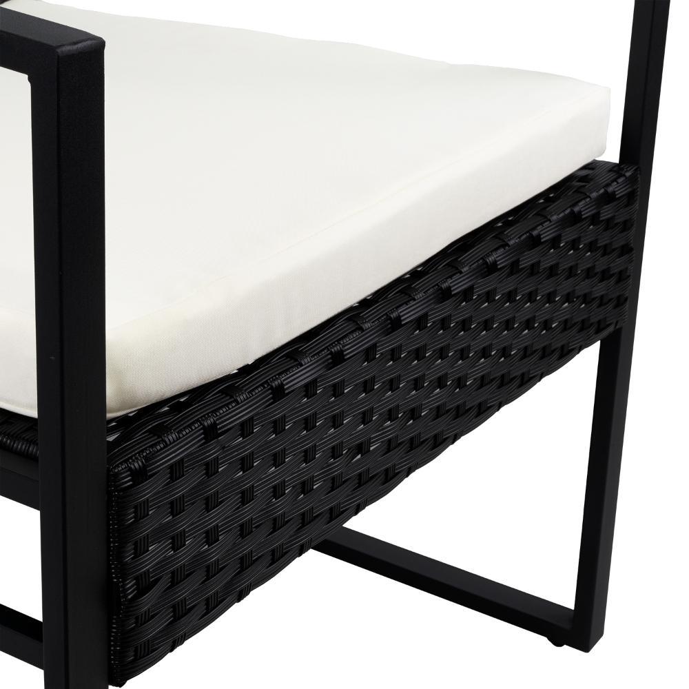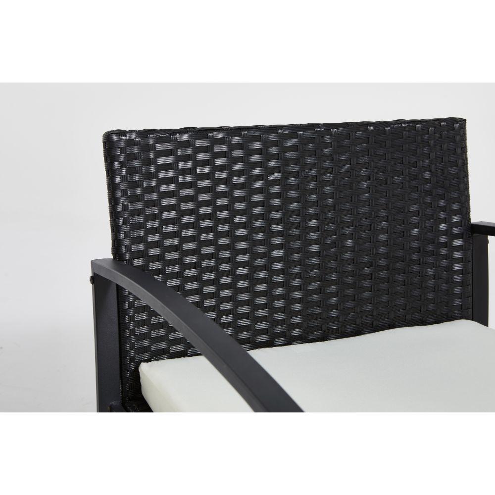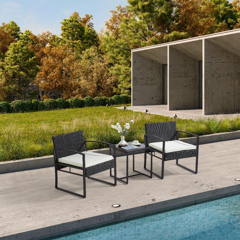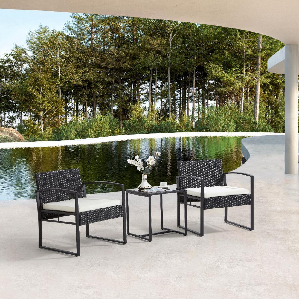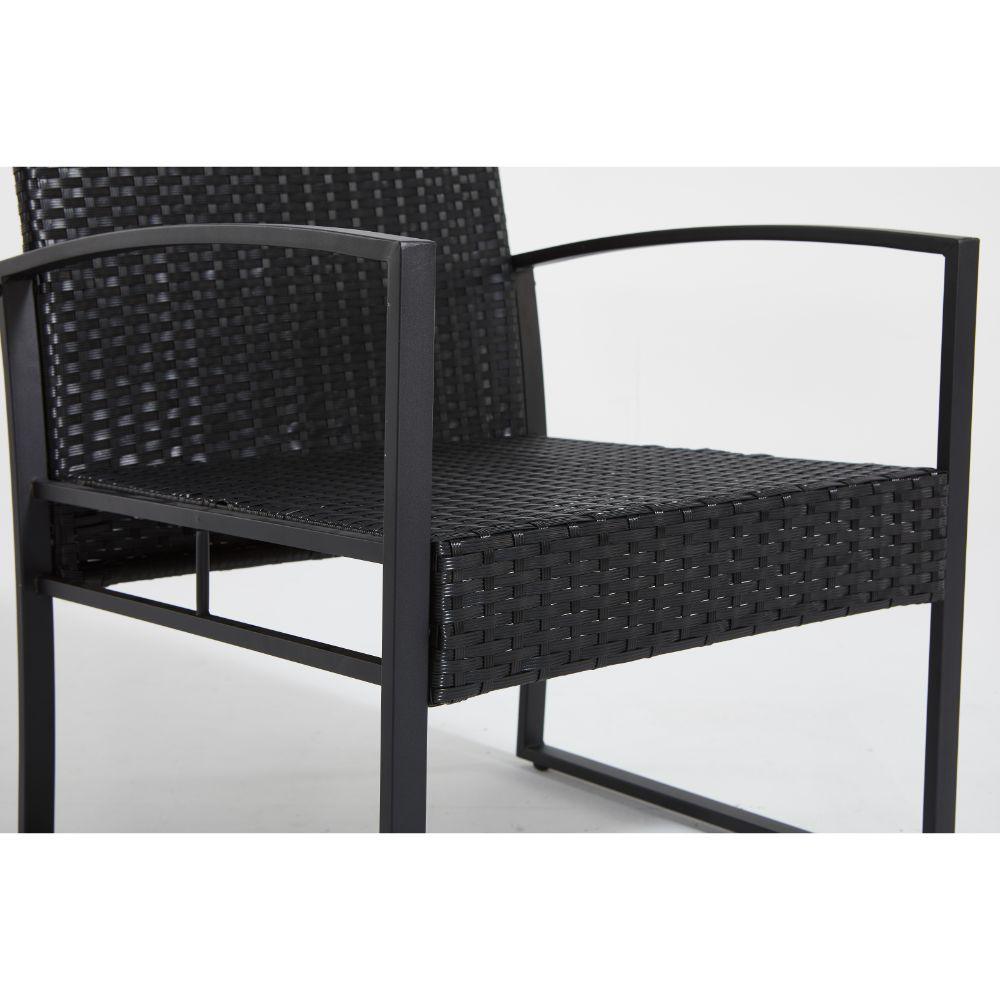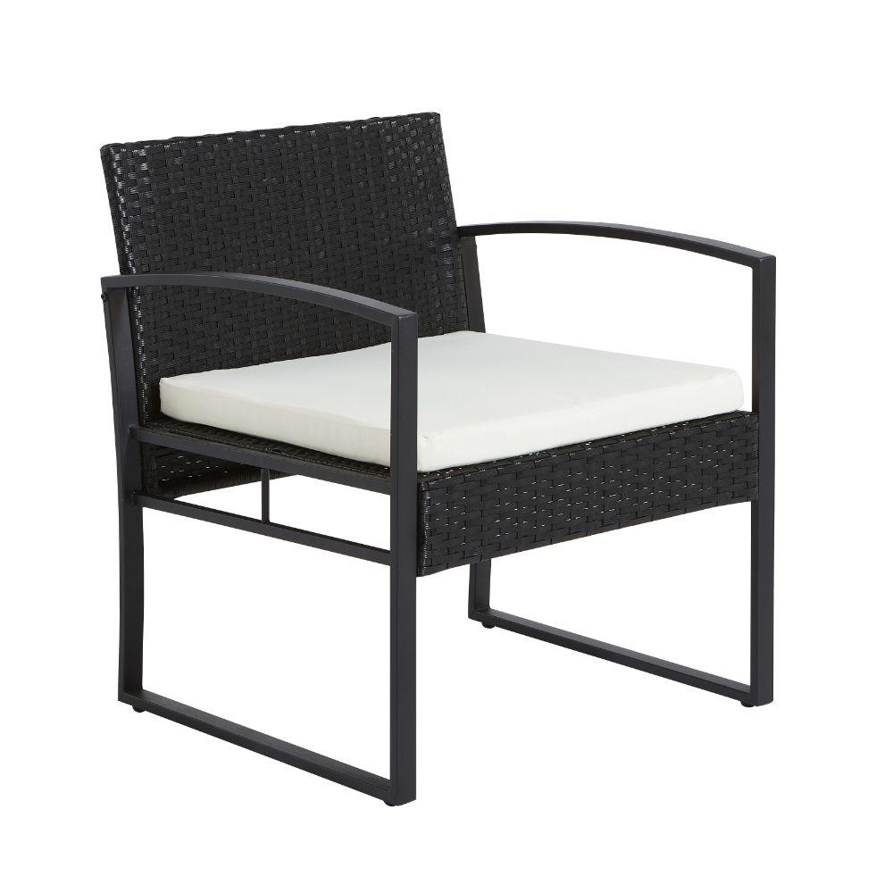 Elaborado en Plástico, Metal y Textil el set incluye mesa y dos sillas, en Color Negro y Blanco.