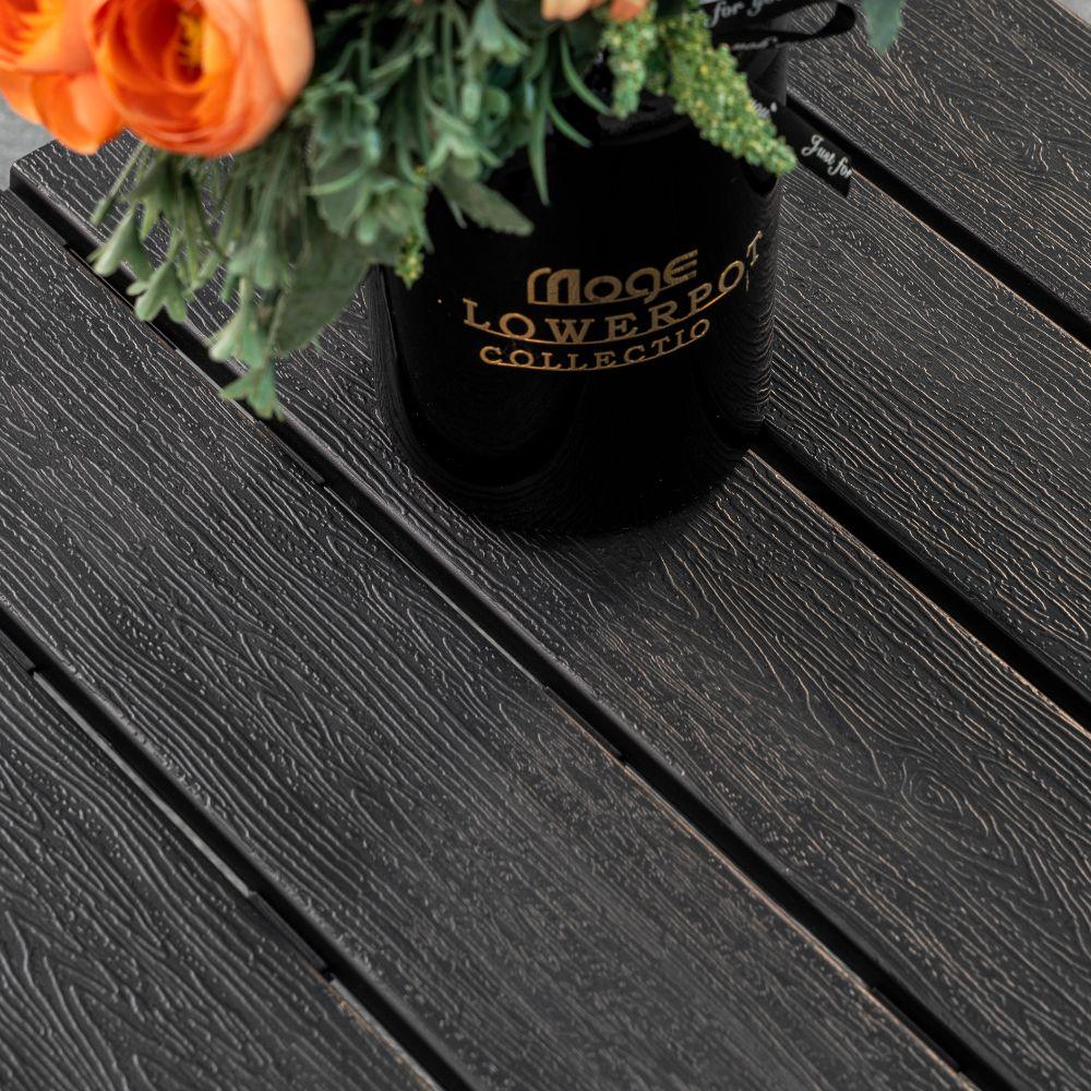 Elaborado en Rattan Sintético el set incluye mesa y tres sillas, en Color Negro y Gris.