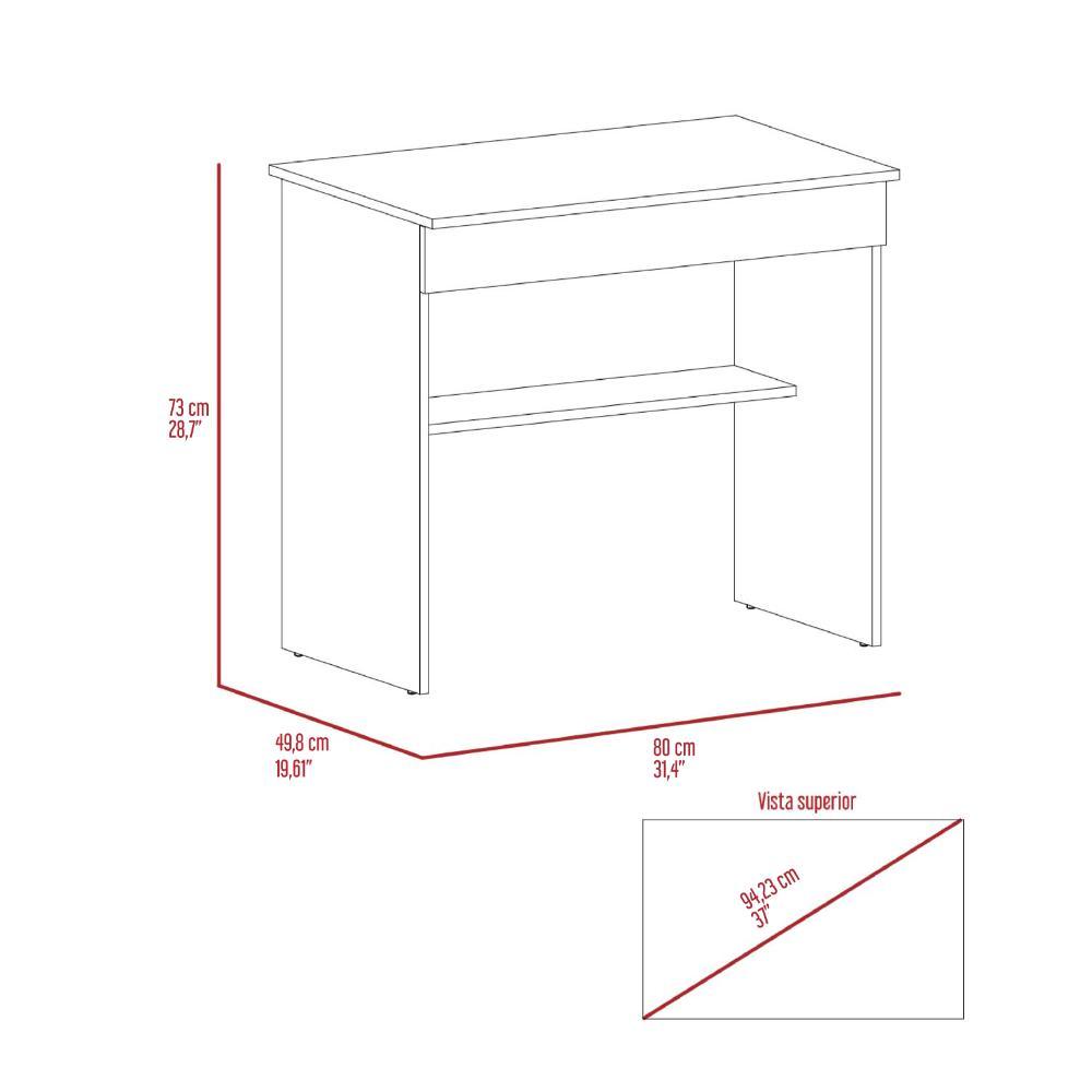 Escritorio con diseño moderno, amplia superficie de trabajo, entrepaño y cajon.