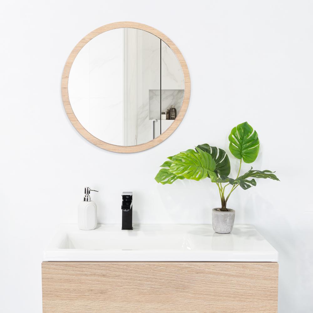 Espejo circular con marco en madera MDP clara cal 15mm y espejo cal 4mm, con chaflán para facilitar su instalación, Color Beige
