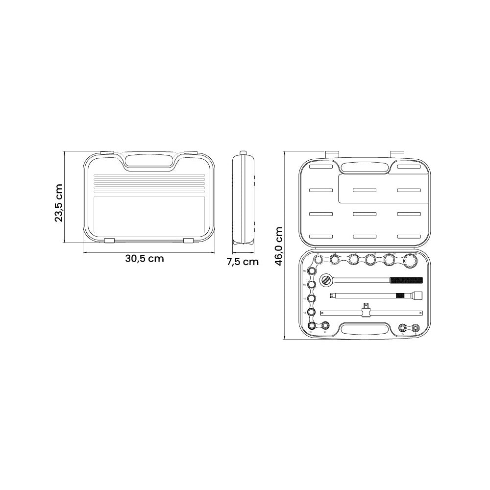 14 dados estriados 1/2": 8, 10, 11, 12, 13, 14, 15, 16, 17, 19, 21, 22, 24, 30 mm