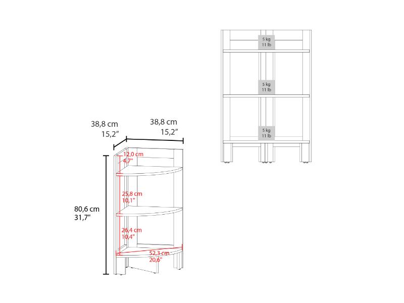 Mesa Auxiliar Esquinera, con tres entrepaños para ubicar objetos decorativos.