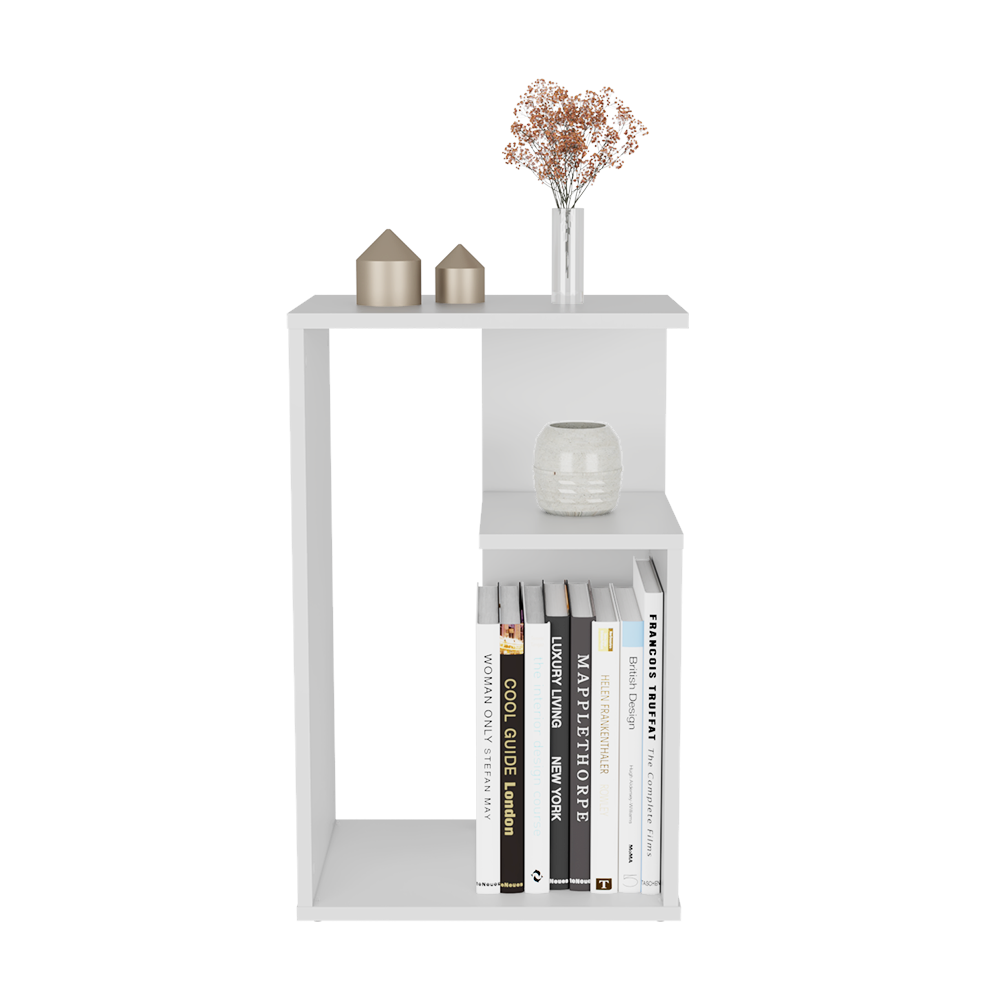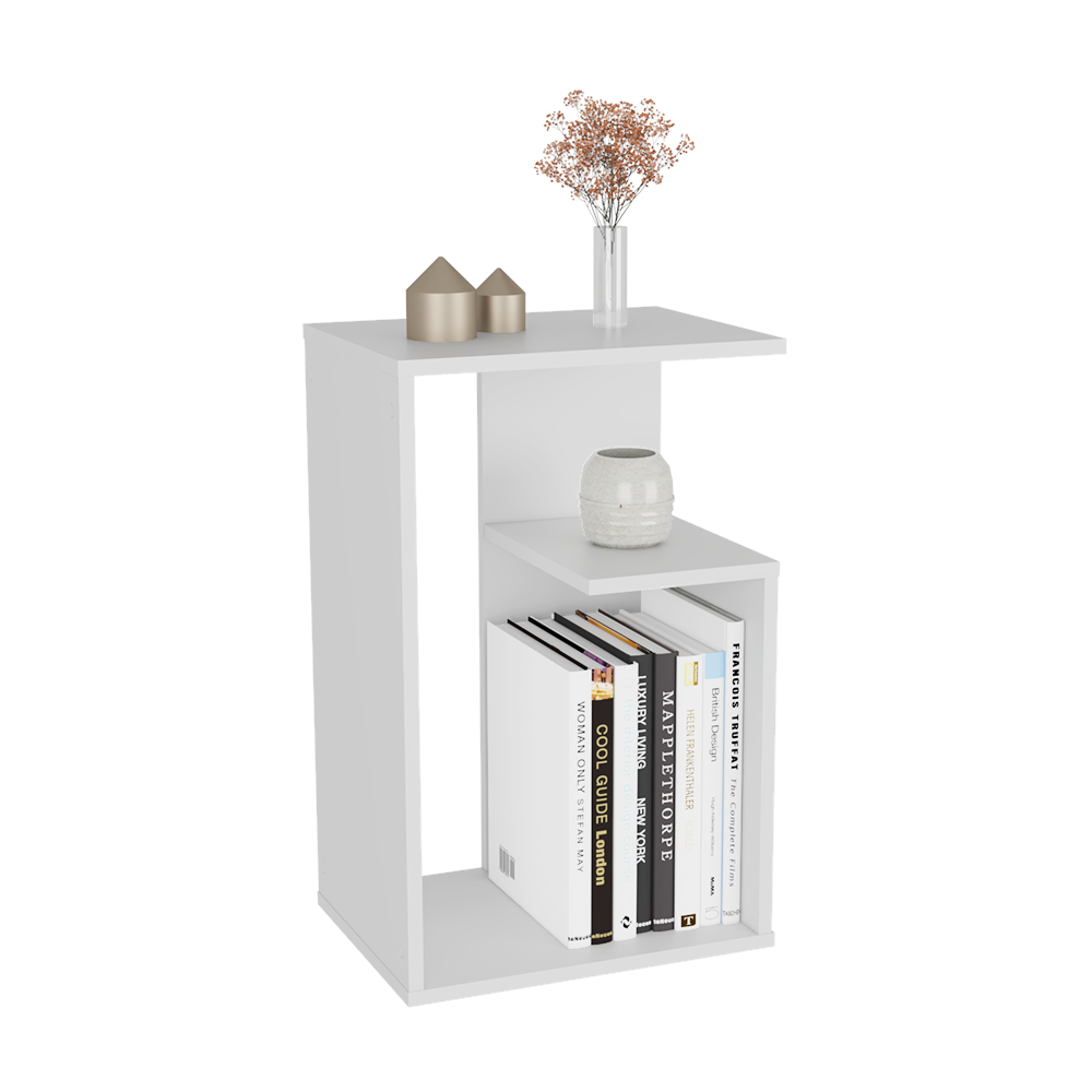 Mesa Auxiliar Evert, Blanco, con diseño moderno y espacio para ubicar objetos
