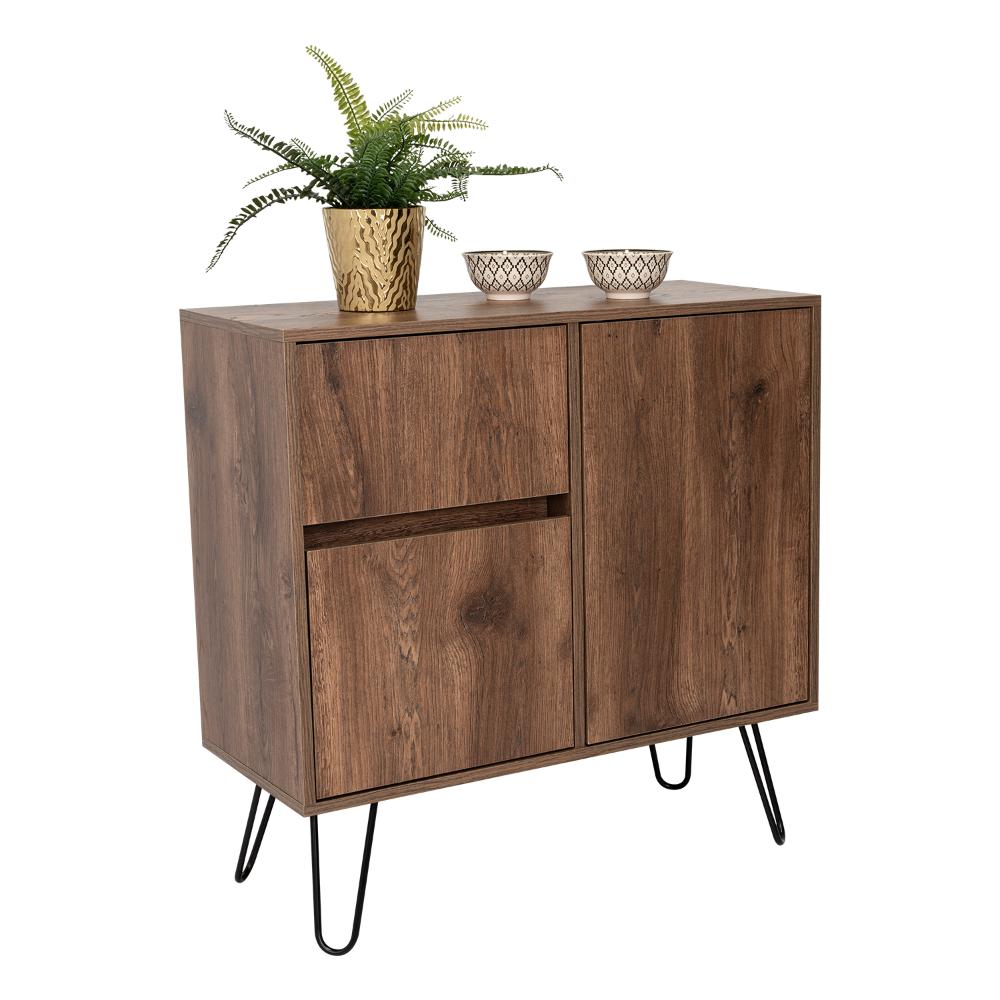 Mesa Auxiliar, Rony, Nogal, con Dos Puertas y Un Cajon