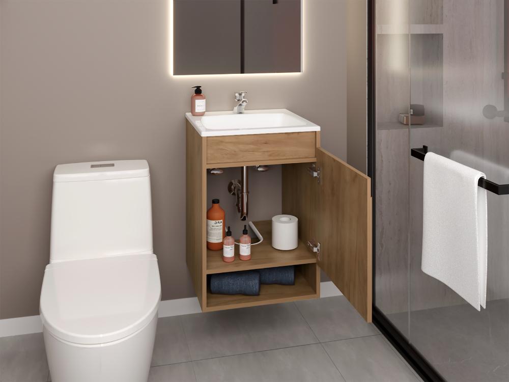 Mueble Lavamanos, con 1 puerta abatibles, con espacio para almacenar objetos, facil instalación. Incluye Lavamanos Praia 45