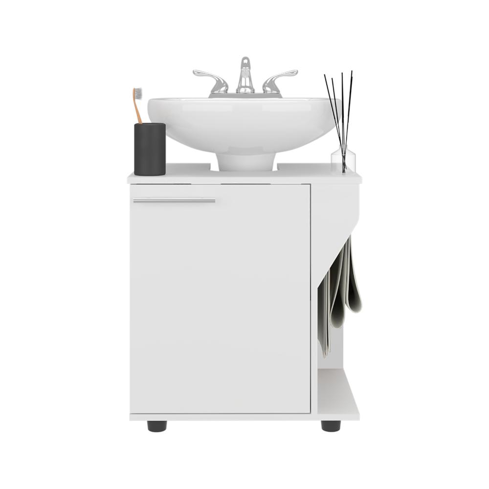 Mueble Lavamanos, con espacio para colocar objetos, una puerta abatible, una manija metalica y es de facil instalación