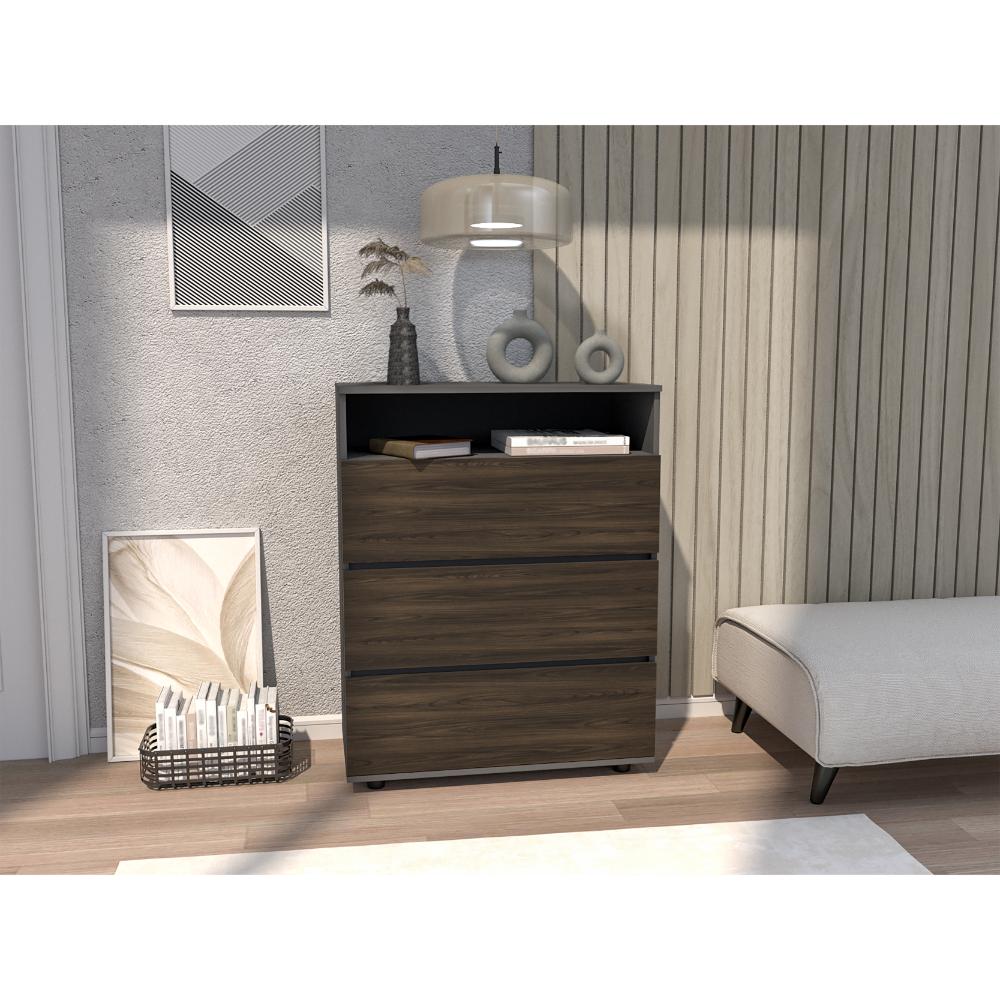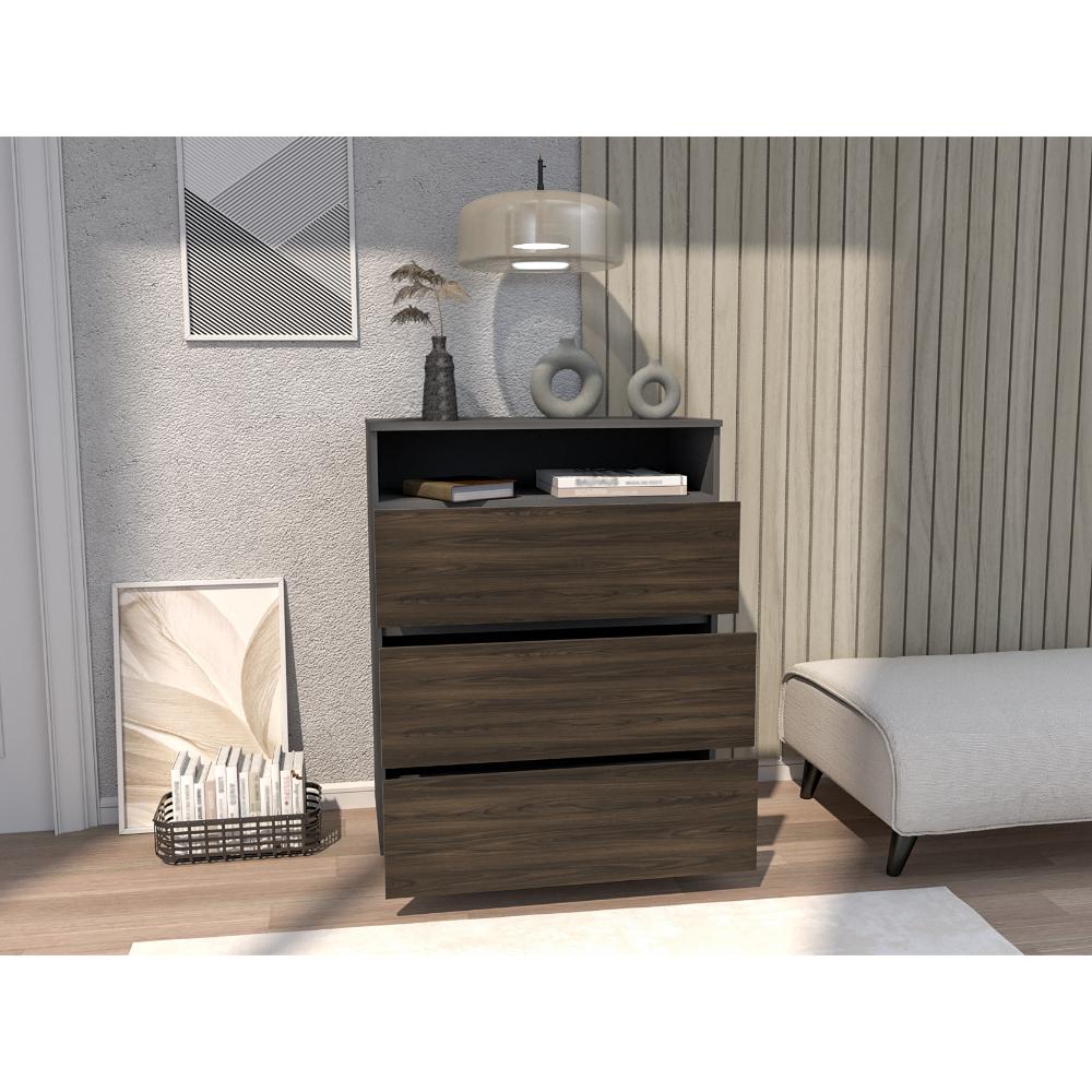 Organizador Houck, Plata Oscuro y Nogal Europeo, cuenta con 3 cajones para almacenar