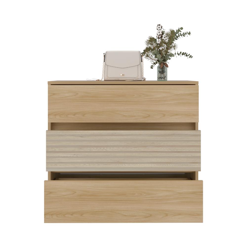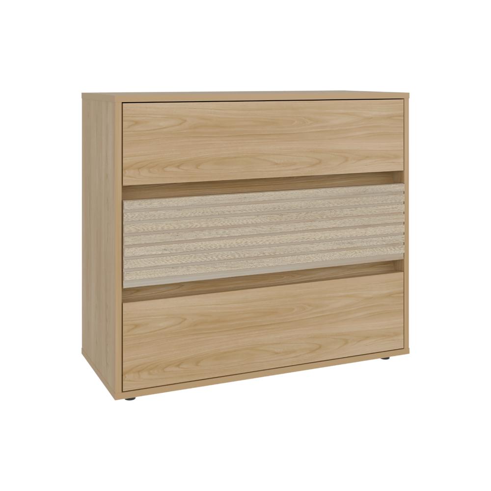 Organizador Wandda,Fresno Europeo y Roble Natural, con tres cajones