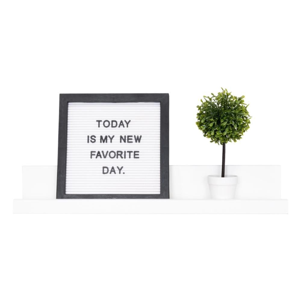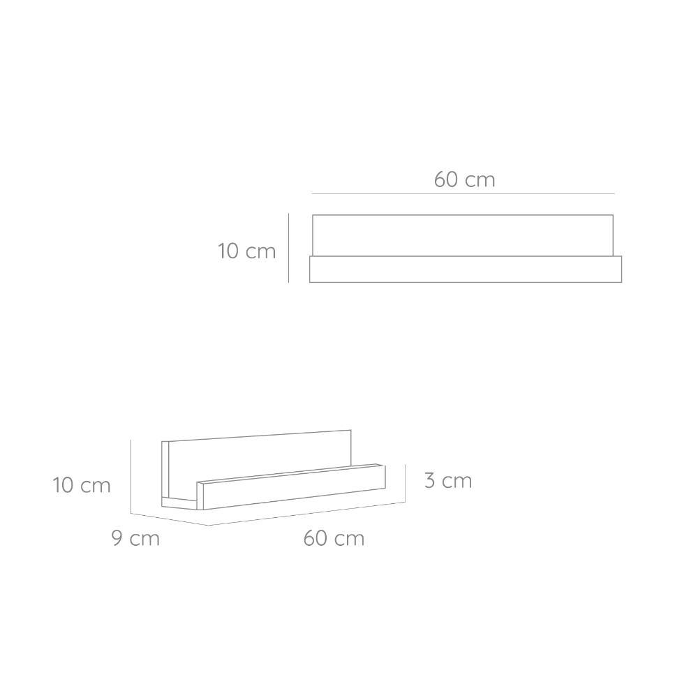 Repisa, decorativa en forma de J, contiene chazos tornillos y tapa tornillo para instalación.