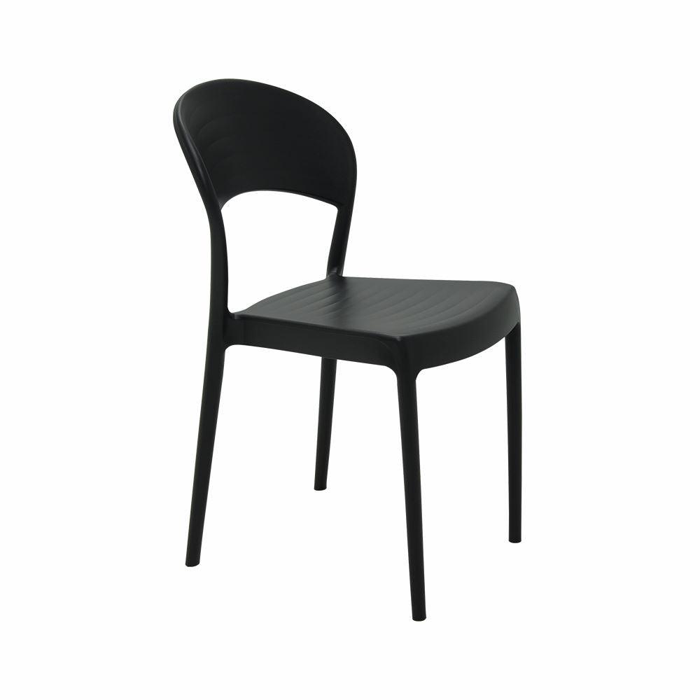 Silla Sissi sin Brazos Respaldo cerrado, elaborado en Polipropileno y fibra de vidrio,con un diseño especial, tiene capacidad para 182 kilos y permite una composición mucho más moderna y versátil en los espacios, en color Negro.